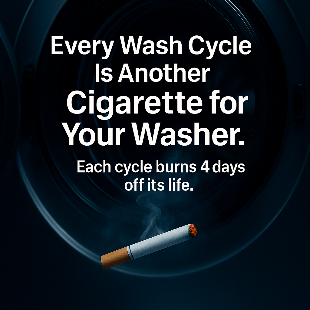 Your washer’s rubber seals, drain lines, even the internal bearings — all that sludge traps moisture and bacteria. Over time, it’s like your washer’s smoking a pack a day.